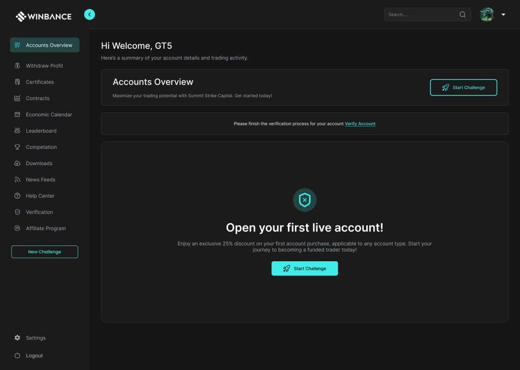 Las Cuentas de Desafío de Winbance están diseñadas para evaluar tu disciplina en el trading y tu control del riesgo.